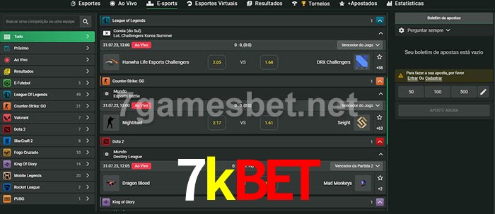 O 7kbet oferece uma grande seleção de opções de apostas em e-sports com probabilidades competitivas